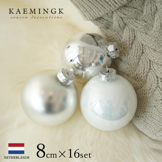 クリスマスツリー 飾り オーナメント ボール セット KAEMINGK ホワイト&シルバー 8cm 16個入 デコレーションボール[140789]