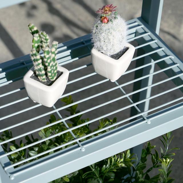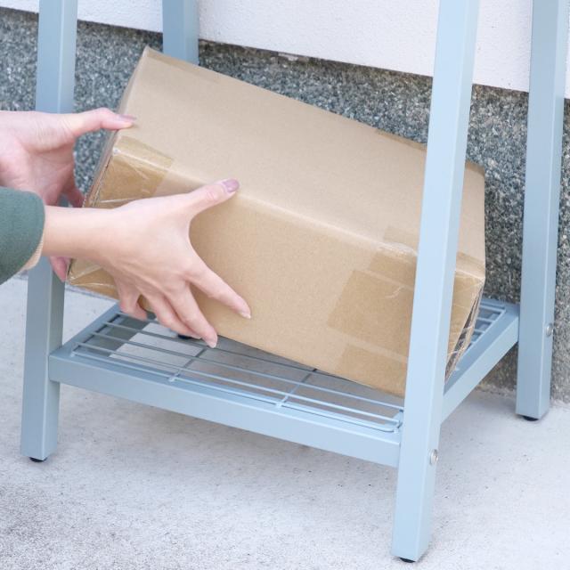 上下2段の棚板付きです。飾り棚としてお花やグリーンを飾ったり、ガーデニングアイテムを収納したりできます。