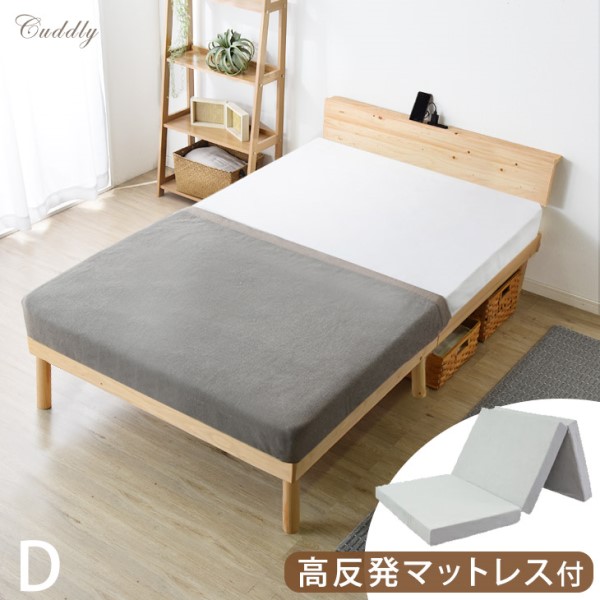 【10時〜P5%還元】 ベッド マットレス付き ダブル すのこベッド 宮付き 高さ調節 2段階 ベッド マットレス ローベッド ベッドフレーム マットレス マットレス付き マットレスセット ウレタン 高反発 190N 10cm 北欧