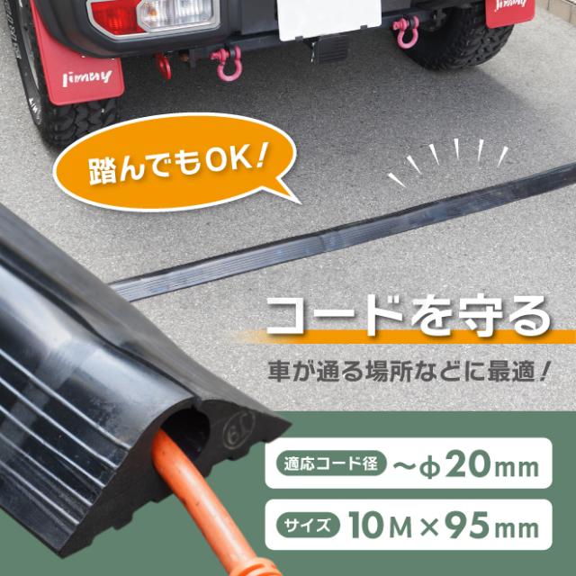 コードプロテクター Φ20mm×10M 幅95mm 高さ最大30mm ケーブルガード ケーブルプロテクター 配線ガード 黒 屋外 屋内 KIKAIYA