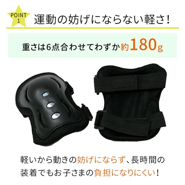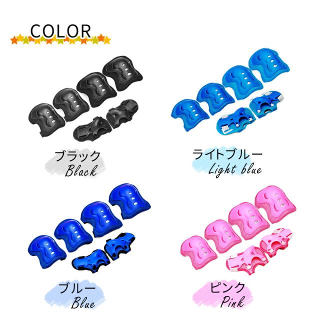 キッズプロテクター/6点セット/マジックテープ式/プロテクター/キッズ/子供/肘/手/膝/腕/サポート/サポーター/けが防止/怪我/怪我防止/安全/マウンテンバイク/自転車/厚い/衝撃吸収/ガード/軽い/軽量/膝あて/肘あて/ニーパッド/スケートボード/ローラースケート/キックスクーター/スケボー/ひじ/ひざ/子供用/エルボーガード/男の子/女の子/防具/おしゃれ/かわいい/リストガード/練習/プロテクト/