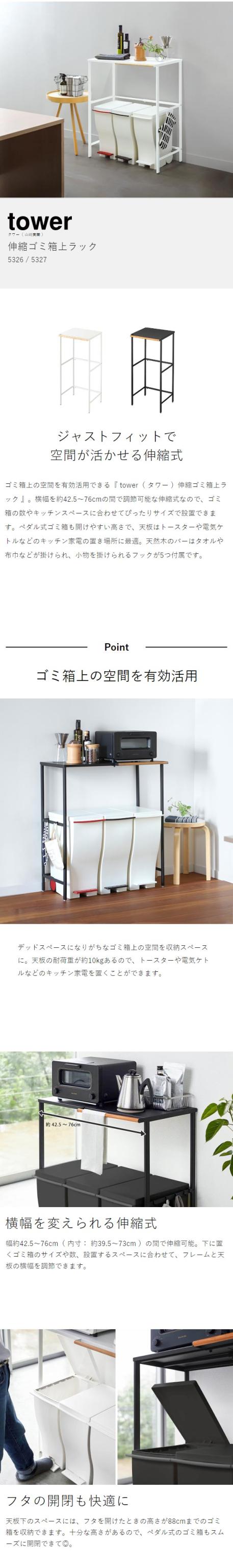 [ 伸縮 ゴミ箱上ラック タワー ]山崎実業 tower ゴミ箱 上 ラック 収納 ごみ箱 キッチンラック レンジボード キッチンボード レンジ台 食洗機ラック キッチン収納 シンプル ダストボックス おしゃれ モノトーン タワーシリーズ yamazaki ブラック ホワイト 5326 5327