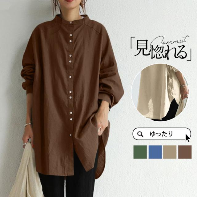 【水曜日まで!10%クーポン配布中】 ブラウス レディース ロングシャツ 重ね着 インナー 通勤 通学 OL 春夏秋 チュニック カジュアル tシャツ 長袖 ゆったり