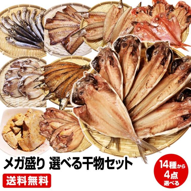 【父の日 お中元 ギフト 誕生日プレゼント 内祝 暑中見舞 御中元】≪風呂敷 対応可≫当店人気ナンバー1★沼津直送メガ盛り 一品一品選べる 4点 干物セット★金目や沼津産鯵干し 北海道 産ホッケ他全33種類の中から4点チョイス 送料無料 お取り寄せ お試し 保存食
