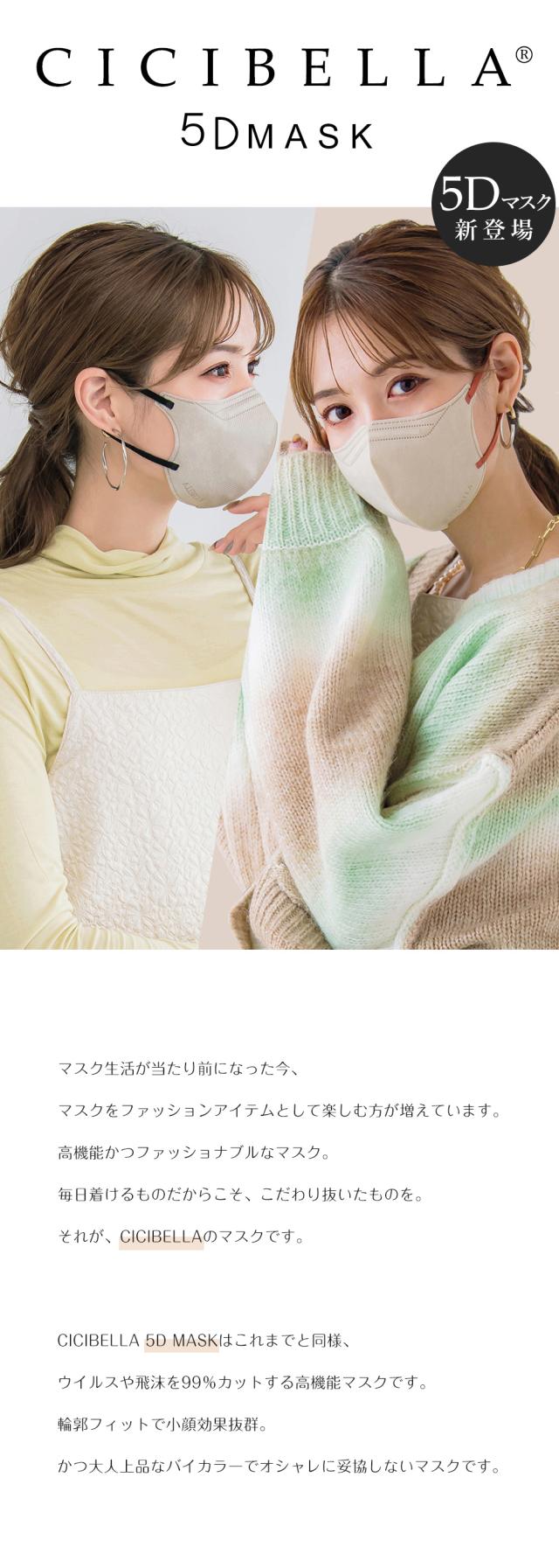 【夏新色追加】5Dマスク シシベラ 小顔マスク バイカラーマスク 立体 マスク 不織布 血色マスク 不織布マスク カラー 冷感マスク 5D マスク くちばし マスク 使い捨て 小顔 ノーズワイヤー 大きめ 小さめ 3Dマスク 耳が痛くならない 20枚 10枚*2 おしゃれ cicibella 送料無料