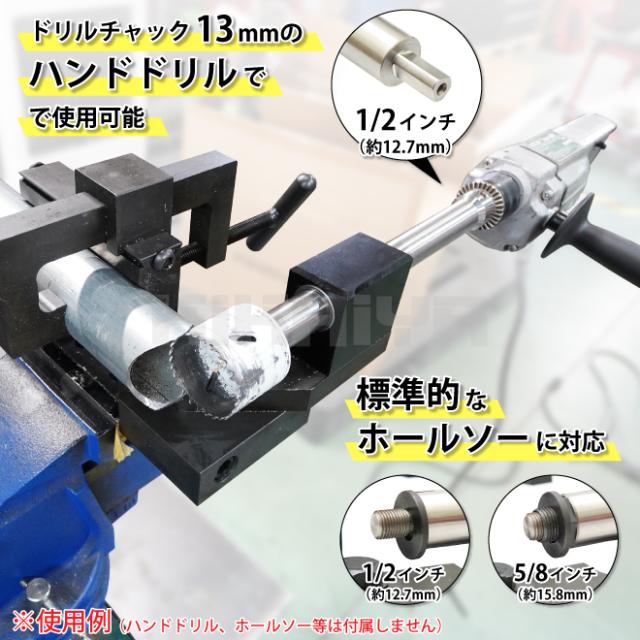 パイプ接続部の加工が簡単にきれいに出来る! ●パイプの加工(えぐる、ざぐる)が簡単にきれいに出来ます ●3/4インチ〜3インチまでのパイプの加工が可能です ●頑丈なスチール製 ●切削角度は50度まで調整可能 ●ドリルチャックが13mmのドリルを接続して切削します(ドリルは付属しません) ●標準的なホールソーに対応します(ホールソーは付属していません) ●ベンチバイスや作業台にしっかりと固定して使用してください ※ご使用には技術が必要になる為、製品の使用方法をご理解の上、お求め下さい (使用方法についての説明書は付属しません) ★「ホールソー」の販売ページはこちら ※製品改良の為、予告なく仕様を変更する場合がございます 【例】本体の形状や色 等 ご使用に問題のない場合(返品/交換)はお受けしておりませんのでご了承ください 品番:PNC-3 |