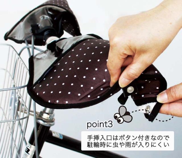 自転車走行時の風よけ 雨よけ 日よけ 日焼け対策 紫外線対策に。 肌寒い季節に冷たい風から手を守ります。寒い日や雪の日も快適走行。 |