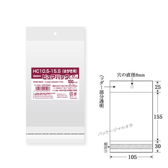 ヘッダー付 OPP袋 ピュアパック HC10.5-15.5 (はがき用) 1000枚