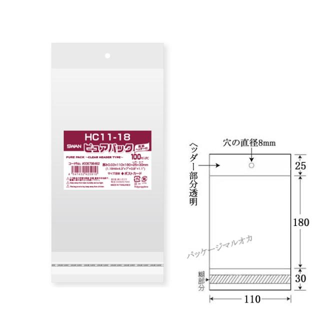 【直送/代引不可】ヘッダー付 OPP袋 ピュアパック HC11-18 5000枚