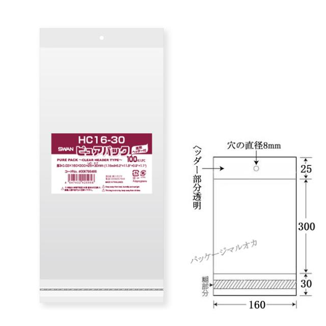 【直送/代引不可】ヘッダー付 OPP袋 ピュアパック HC16-30 3000枚