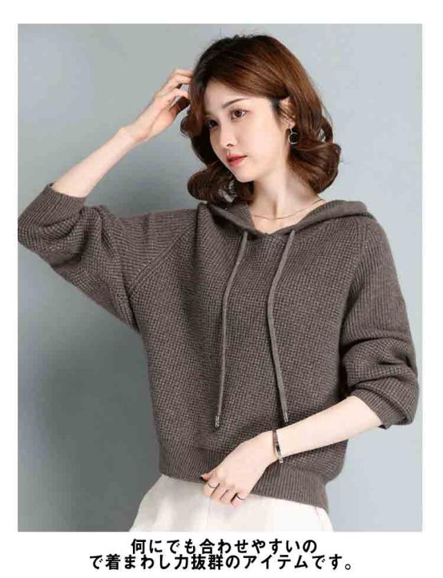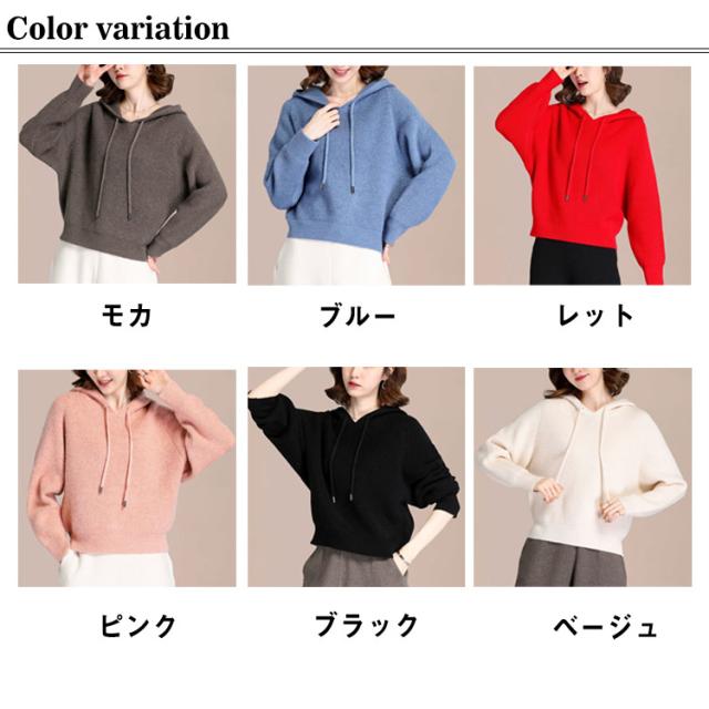 ニットパーカー レディース ワッフルニット リブニット フード付き ドルマンスリーブ ニット パーカー プルオーバー セーター 秋冬 もこもこ ふわふわ かわいい 無地 シンプル 暖かい ゆったり