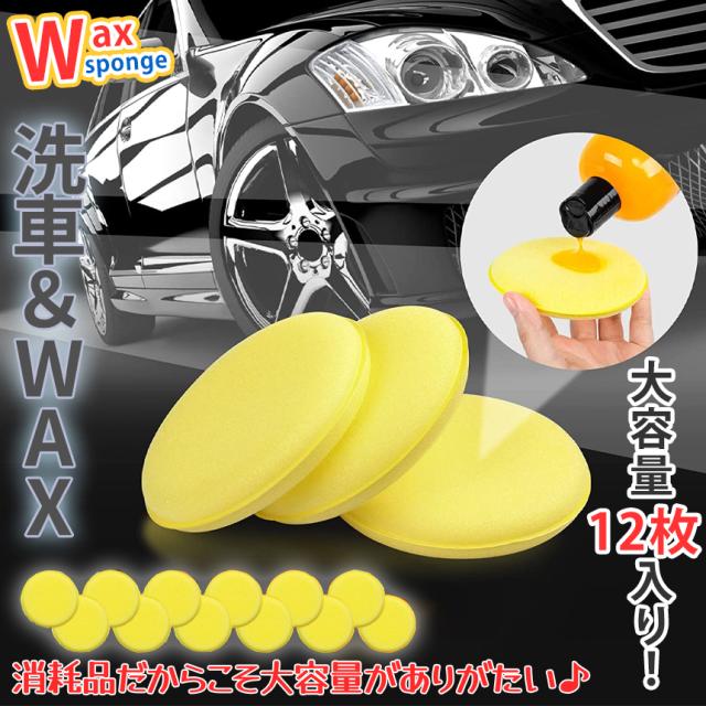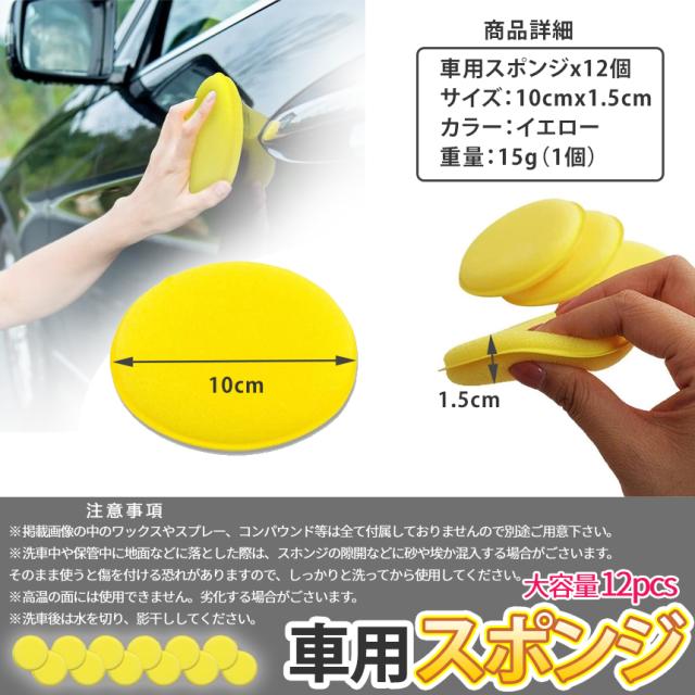 洗車 スポンジ 12枚入り ワックススポンジ 両面 使用 車 高密度 タオル 傷 つきにくい 10cm ワックス WAX 掃除 洗浄 清掃 グラス コップ 汚れ 研磨 カー用品 バイク オフィス トレイ お風呂 SYAPONJI 送料無料