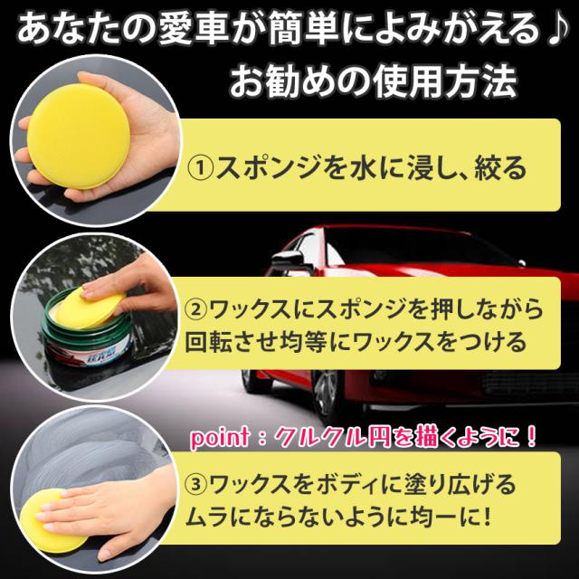 【商品説明】あなたの愛車が簡単によみがえる!!洗車に人気アイテムのワックス用スポンジです♪もちろんグラスや皿洗い、お風呂掃除にも◎高密度の超極細スポンジなので程良いワックス吸水率が魅力です。ワックスを無駄なく使えてムラもなりにくく経済的!洗車やワックスがけなど、マルチに使用可能な手のひらサイズのスポンジです。耐久性に優れるポリエステル材質で繰り返し使用可能です。【商品仕様】直径:約φ100mm重量:15g材質:ポリエステル入数:12個入り[注意事項]※洗車後は水を切り、影干ししてください。※高温の面には使用できません。劣化する場合がごさいます。 ※掲載画像のワックスやスプレー、コンパウンド等は付属しておりませんので別途ご用意下さい。※洗車中や保管中に地面に落下した際はスホンジの隙開などに砂や埃か混入する場合がごさいます。そのまま使うと傷を付ける恐れがありますので、しっかりと洗ってから使用してください。※日本語説明書は付属しておりません。※輸入品ですので多少の臭いやスレ傷、汚れはご了承ください。※サイズは実寸ですが若干前後する場合がございます。※詳細は画像にてご確認ください