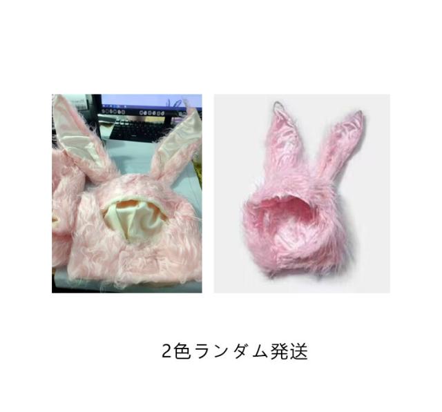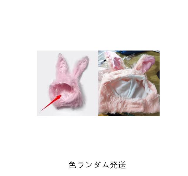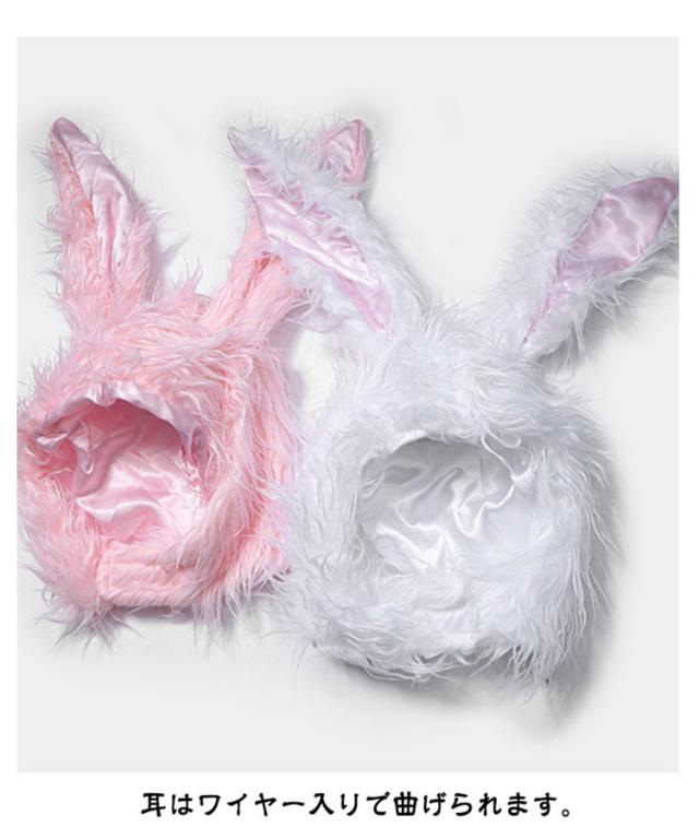 うさぎ かぶりもの コスプレ コスチューム 帽子 耳 被り物 毛足長め マジックテープ 女性 レディース 動物 アニマル 衣装 ハロウィン 無地 全3色