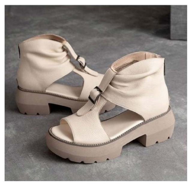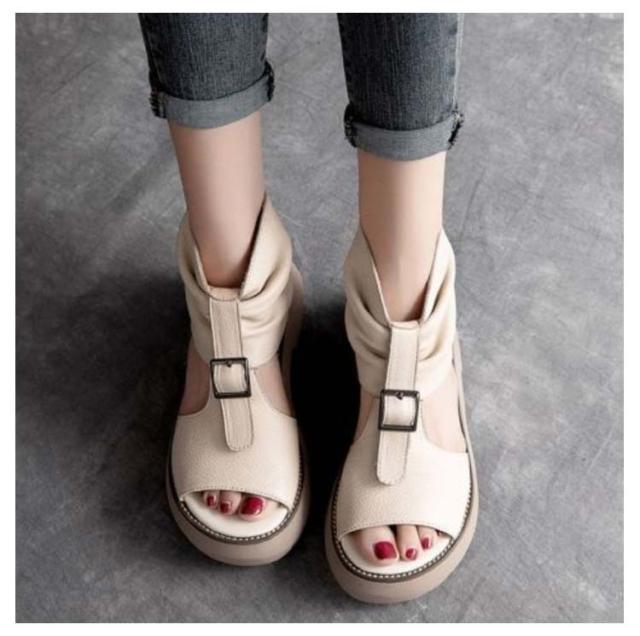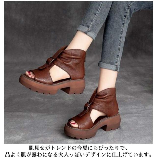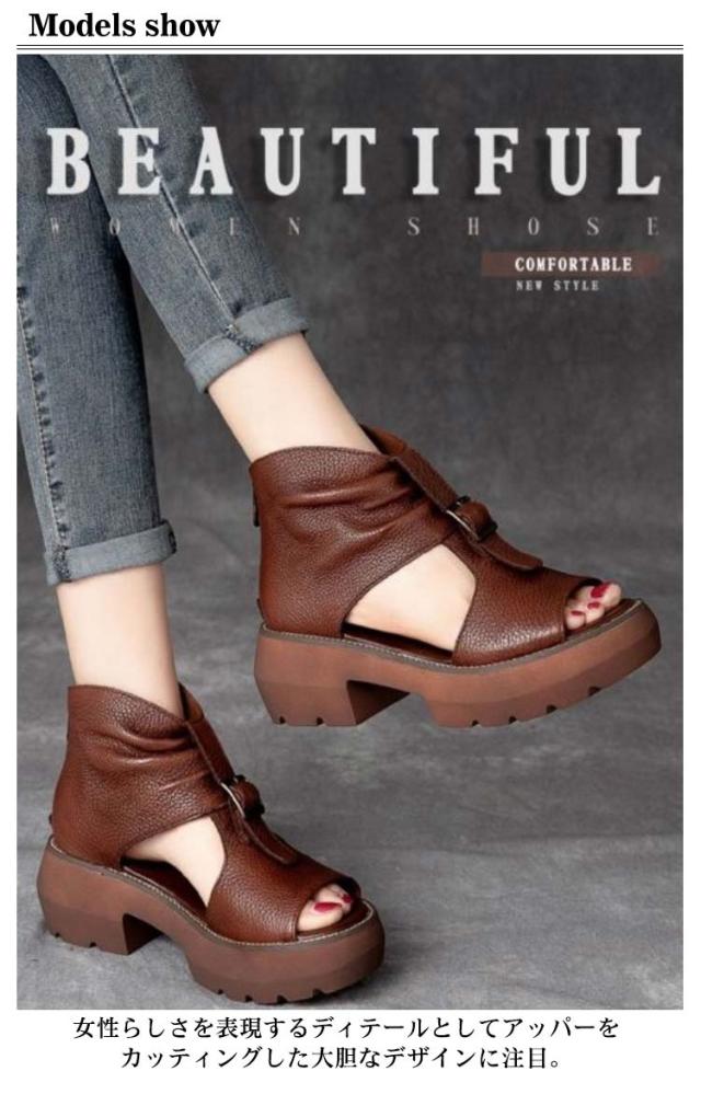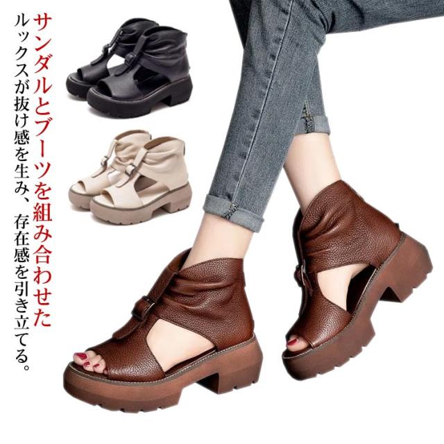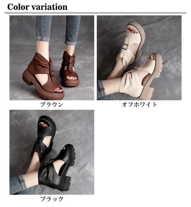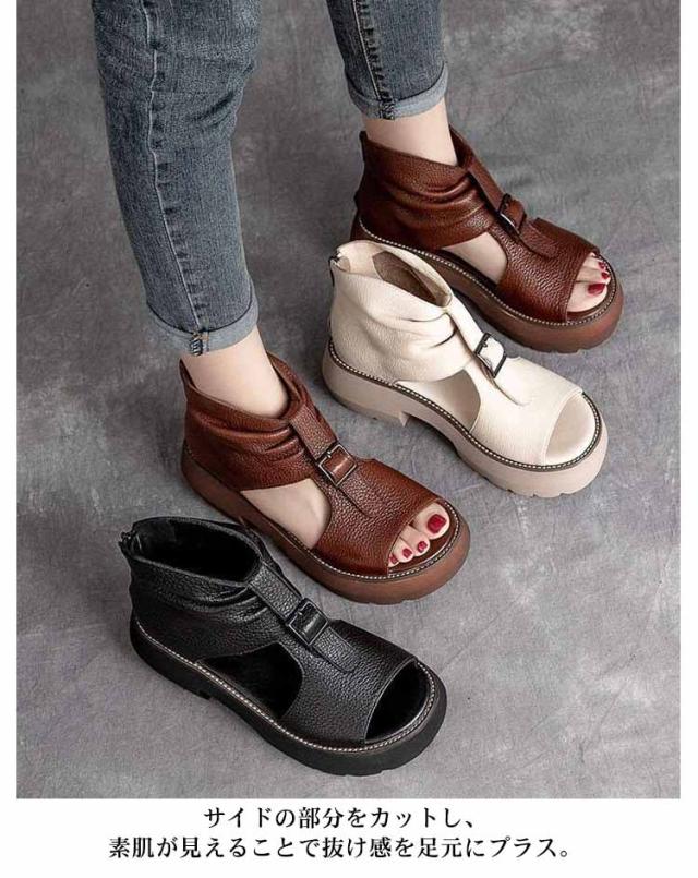 ブーツサンダル 厚底サンダル レディース ヒールサンダル オープントゥ 疲れにくい 痛くない 歩きやすい サマーブーツ 本革 最新版 改良版 カジュアル 美脚 靴 パンプス オシャレ オフホワイト ブラウン
