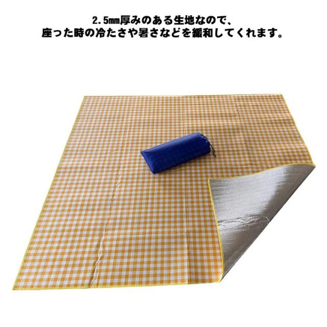 | キャンプやピクニック、お花見にぴったりの、やわらかな座り心地のシート 撥水加工のアルミ素材、速乾性にも優れているので、雨、海や川遊びで濡れても扱いやすいシートです 2.5mm厚みのある生地なので、座った時の冷たさや暑さなどを緩和してくれます。優しい座り心地で、長時間でも快適です 小さくたたんで携帯に便利な収納袋付 キャンプやピクニック、公園やお花見、遠足や運動会などバッグの中からサッと出して使えるレジャーシート | |