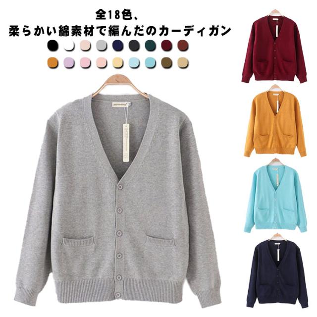 全19色 制服 スクールカーディガン コットン 無地 ゆったり Vネック ニット スクールセーター ニット 羽織り 男女兼用 JK制服 学生服 女子 学校 高校生 中学生 通学 綿 コスプレ イベント 秋 冬 無地 グレー ネイビー ブラック 紺 黒 シンプル