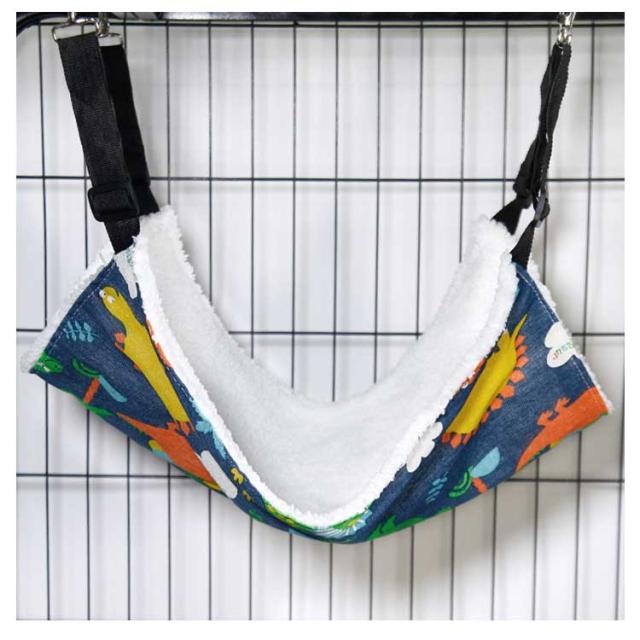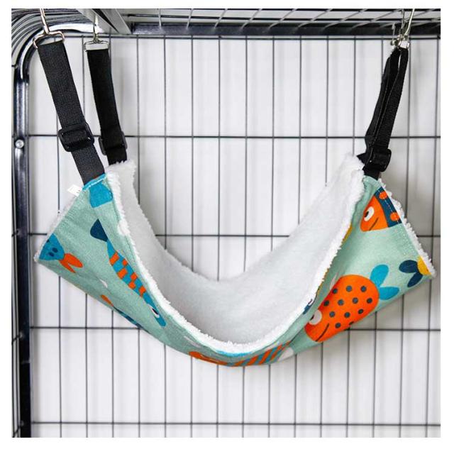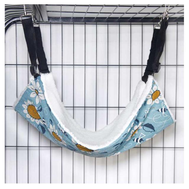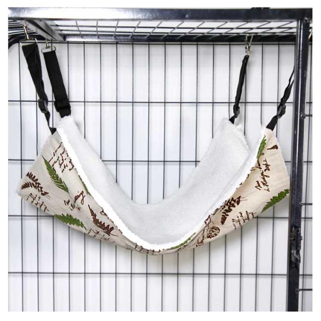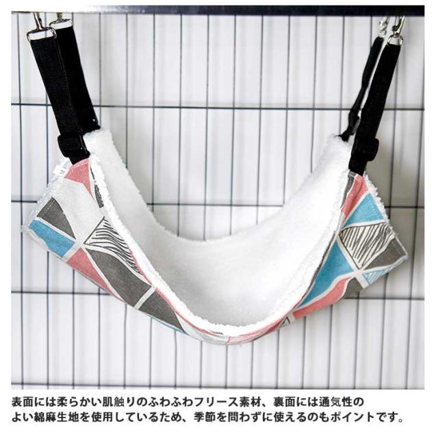 | 椅子の下・ケージ内などの安定した場所であれば、どこにでも取り付けられる。 ベルトの長さは取り付け場所に合わせて調節が可能です。 表面には柔らかい肌触りのふわふわフリース素材、裏面には通気性のよい綿麻生地を使用しているため、季節を問わずに使えるのもポイントです。 猫だけでなく小型犬やモルモット、うさぎなどの小動物の昼寝場所にもできます。 | |