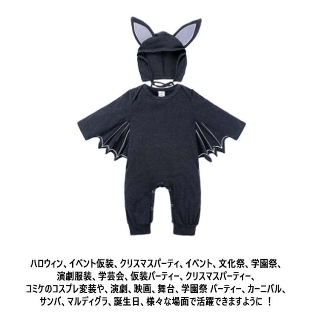 送料無料 ハロウィン ベビー 着ぐるみ ロンパース 仮装 衣装 子供 コウモリ 80cm 90cm 女の子 男の子 コスプレ 赤ちゃん ベビー ベビー服 キッズ カバーオール ツナギ 綿 コットン かわいい 出産祝い プレゼント 長袖 ジャンプスーツ 薄手 春 写真 撮影 誕生日会