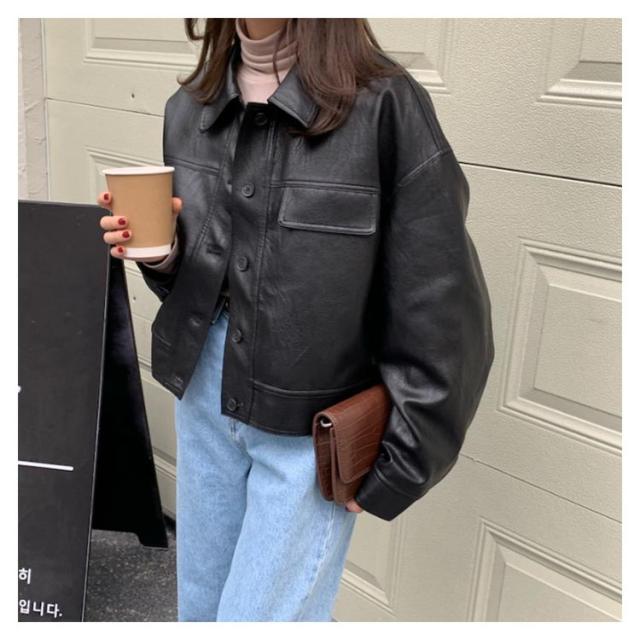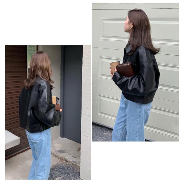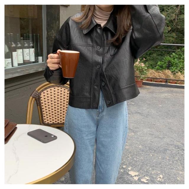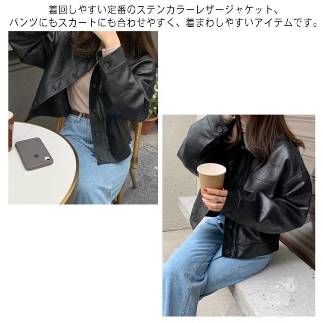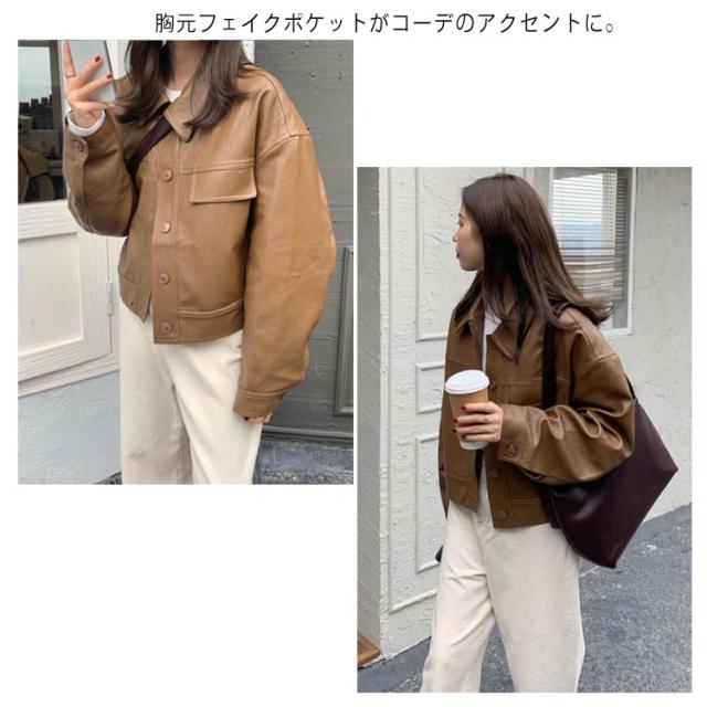 レザー ジャケット レディース アウター ショート丈 レザーコート 革ジャン 革ジャケット 秋 冬 定番 オーバーサイズ マニッシュ ブルゾン 羽織り 20代 30代 40代