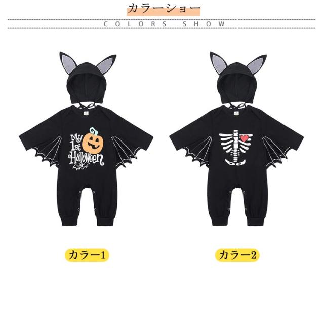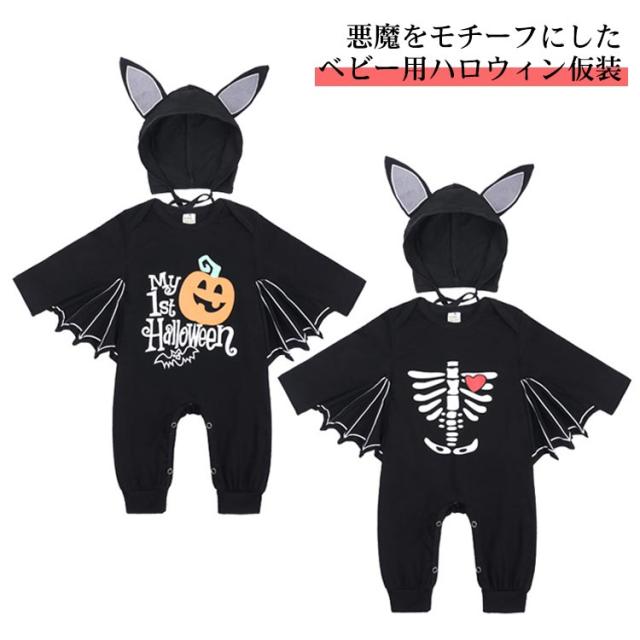 ベビー ハロウィン 仮装 悪魔 ハロウィン衣装 コスプレ 衣装 子供 キッズ 男の子 女の子 こうもり衣装 子供服 ベビー服 コスチューム 長袖 ロンパース 帽子付き きぐるみ かわいい こども 子ども ハロウィーン 衣装 なりきり 幼稚園 保育園 パーティー イベント 送料無料