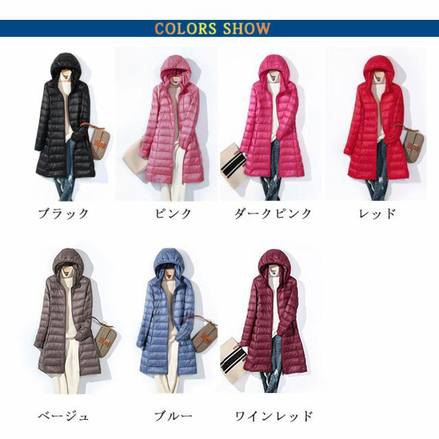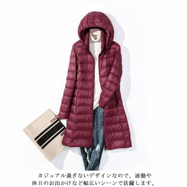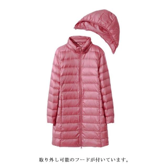 【送料無料】ダウンコート ロング丈 ライトダウン レディース 40代 スタンドカラー 立ち襟 インナーコート ロングダウンコート スリム 軽量 薄手 秋冬 防寒 保温 冬服 通勤 フード付き ポケット付き 20代 30代 50代