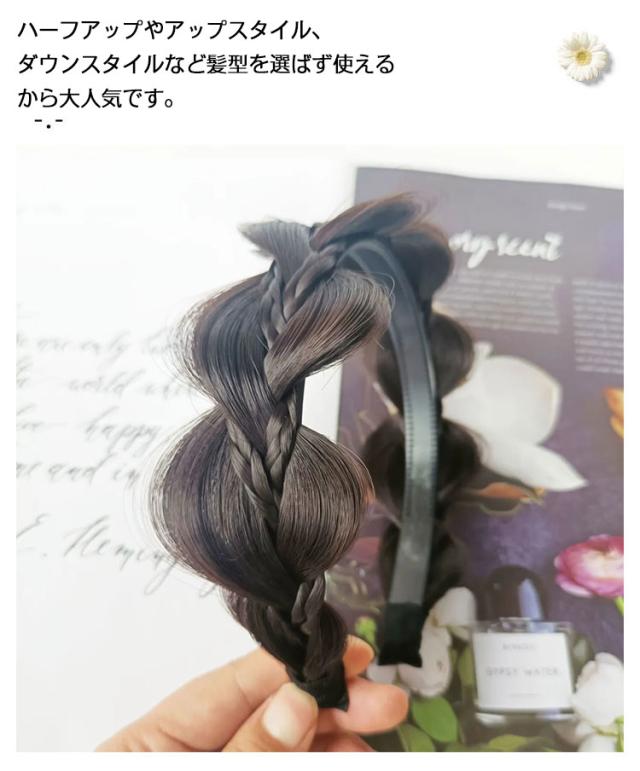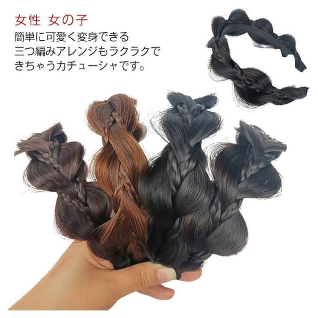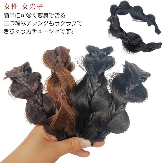 三つ編みカチューシャ ウィッグ レディース ヘアアレンジ 3つ編み みつあみ ヘアアクセサリー ヘッドアクセ ナチュラル 大人 幅広 ヘアーアクセサリー 結婚式 可愛い 秋冬 自然 髪飾り 送料無料