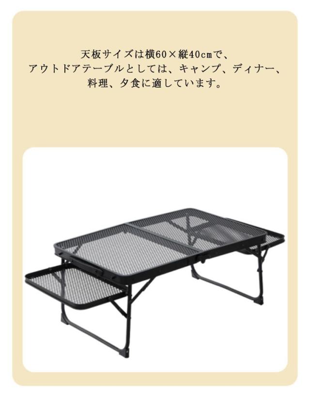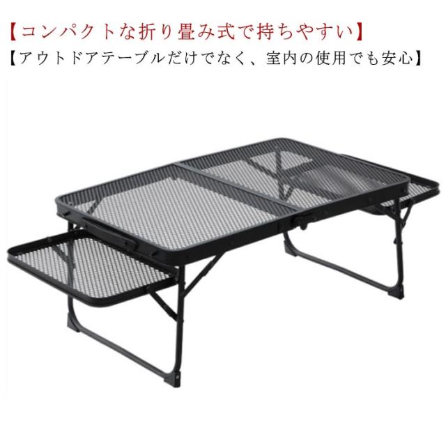 キャンプ テーブル アウトドアテーブル 折りたたみ メッシュテーブル レジャーテーブル アルミテーブル 折りたたみテーブル キャンプ用品 スチールラック バーベキュー 組立簡単 軽量 コンパクト BBQ 花見 家族