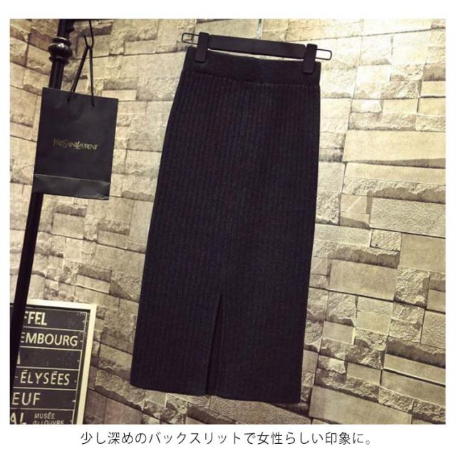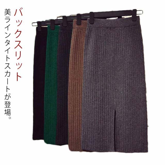 スカート 春 秋 冬 バックスリット リブニット タイトスカート ニットスカート ストレッチ リブニットスカート レディース リブ スリット ロングスカート おしゃれ リブスカート ペンシル 送料無料