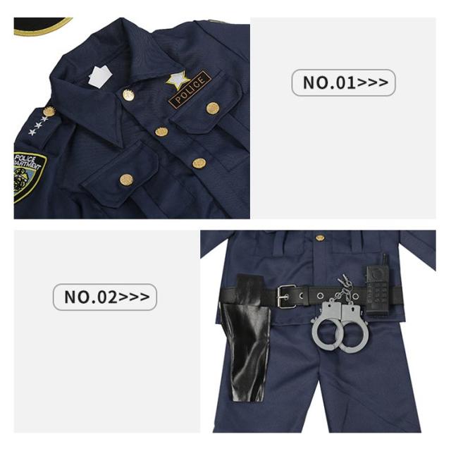 | 子供警官衣装。7点セット内容:トップス+パンツ+帽子+銃器のサック+手錠+ホイッスル+インターホン。完全なりきり警官セットで夢を叶えてあげましょう! 肌に優しくて、高透気性のコスチュームです。 ハロウィンやクリスマスなどパーティーや、忘年会にぴったりです。 イベントを盛り上げるコスプレアイテムとして、パーティーをより楽しく演出です。 ハロウィン、仮装パーティー、クリスマスパーティー、忘年会、文化祭、舞踏会など、様々な場面で活躍できますように。 | |
