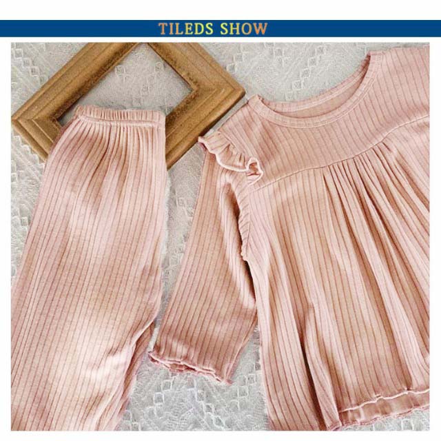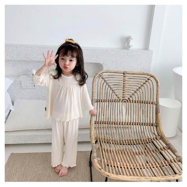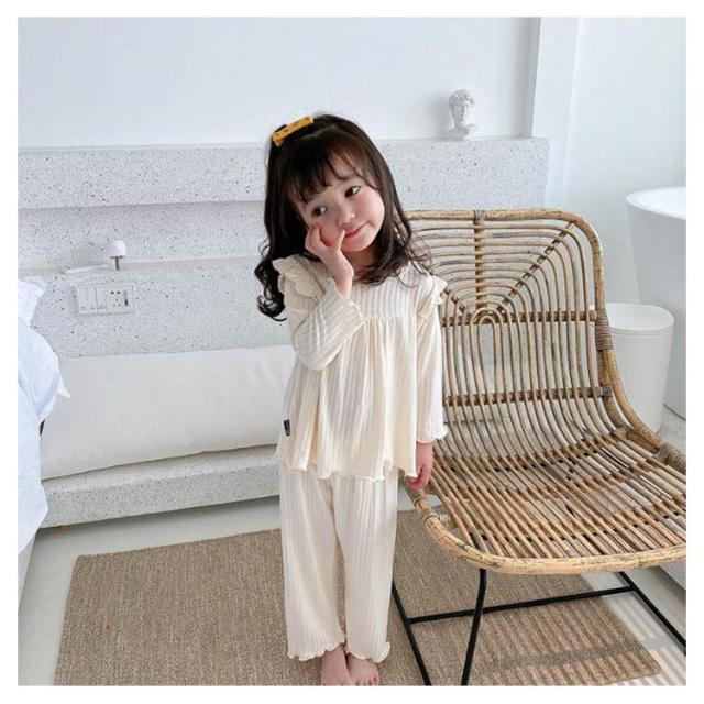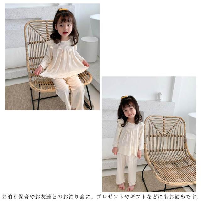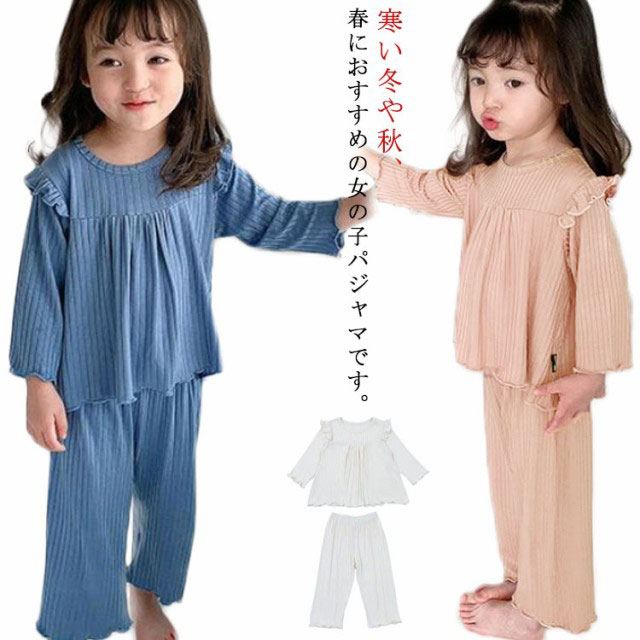キッズ 女の子 パジャマ 春秋 冬 子供服 女児 ルームウェア 上下セット ベビー おしゃれ かわいい 長袖 無地 寝巻き 寝間着 部屋着 セットアップ 長ズボン フリル 可愛い 80 90 100 110 120 130cm 送料無料