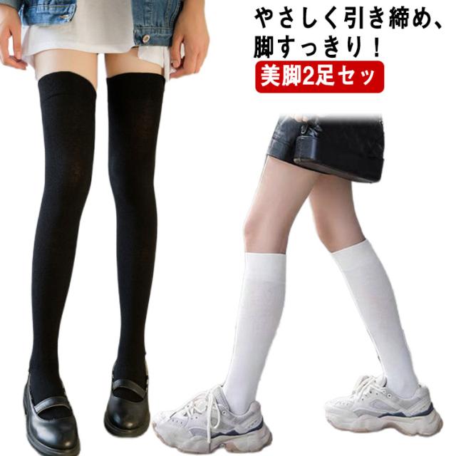 美脚2足セット ニーハイソックス レディース ハイソックス 靴下 着圧 ソックス 秋冬 厚手 防寒 無地 着圧ソックス ニーハイ 着圧ハイソックス 美脚 着圧靴下 白 黒 暖かい 保温 オーバーニー オーバーニーソックス ニーソ ブラック ホワイト