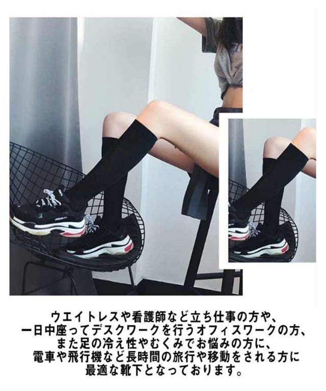 | やさしく引き締め、脚すっきり! つま先部分は締めつけないので、履き心地バツグン! デスクワークや立ち仕事の方も、むくみ解消! お仕事帰りでもスッキリ美脚が続きます! 消臭糸使用でブーツを脱いでも足のニオイが気になりません。 ウエイトレスや看護師など立ち仕事の方や、一日中座ってデスクワークを行うオフィスワークの方、また足の冷え性やむくみでお悩みの方に、電車や飛行機など長時間の旅行や移動をされる方に最適な靴下となっております。 人気の着圧ソックスを是非お試しくださいね♪。 | |