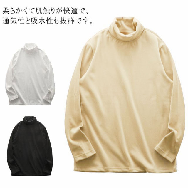 カットソー メンズ インナー ハイネック 長袖 あったか 防寒 トップス Tシャツ 無地 長袖カットソー ゆったり 無地カットソー レイヤード 発熱 重ね着 柔らか 綿 インナートップス タートルネック ロンT 大きいサイズ コットン 極暖 カジュアル