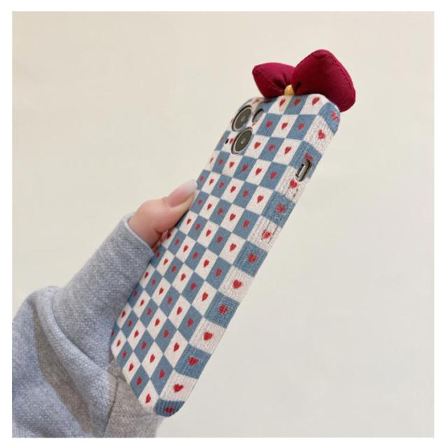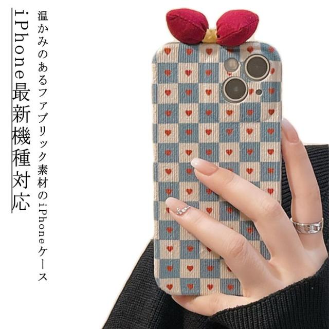 ファブリック スマホケース 秋冬 チェック柄 iPhone14 ケース 起毛 布 ハート リボン スマホ ケース ソフトケース アイフォン ケース レンズ保護 衝撃吸収 スマホカバー 耐衝撃 iPhone14Pro ケース iPhone14ProMax iPhone14Plus ケース iPhone13 送料無料