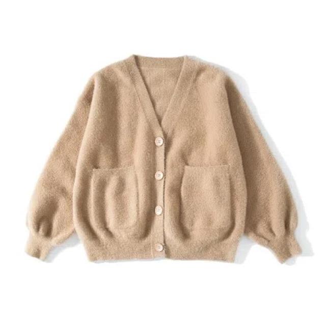 | あたっかな両面起毛もこもこのスクールカーディガン。 もこもこしたニットなので深Vネックにして首回りがすっきり見えるデザインにしています。 ふっくらとした厚みとぬくもりのある見え感が魅力です。寒い時期にピッタリなアイテムです。 袖も長めなので、自然とボリュームスリーブのようなシルエットになり、ルーズな雰囲気を出せます。 見た目も着心地も女子力高めなカーデになっています。 シンプルなデザインなので様々なスタイルにマッチする着回し力抜群のアイテム! | |