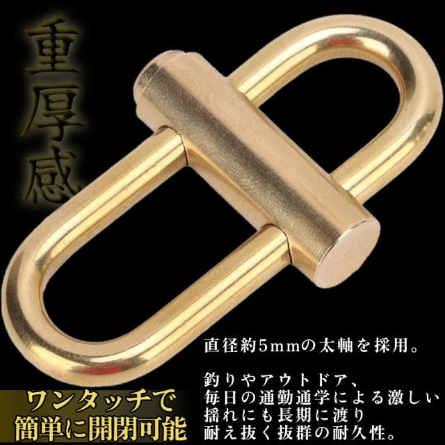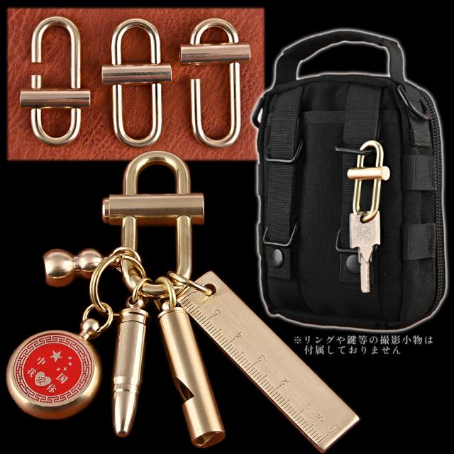 真鍮 キーホルダー キーリング シンプル 頑丈 ブラス BRASS カラビナ アウトドア 小型 ツール 鍵 キー チェーン オシャレ メンズ レディース ゴールド CHUUKEY 送料無料