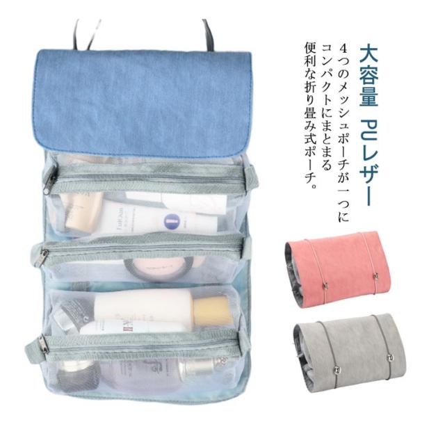 化粧ポーチ 4in1 メイクポーチ 大容量 コスメポーチ 収納バッグ コンパクト 分けて収納 小物入れ 収納 PUレザー 全3色