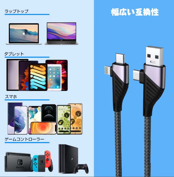 【iPhone 8-17シリーズ対応】 4in1 充電ケーブル USB-C ケーブル iphone17 充電ケーブル Androidケーブル 急速充電 スピードデータ転送 lightningケーブル 急速充電 高速データ転送 絡まり防ぎ 断線防止 ライトニングケーブル