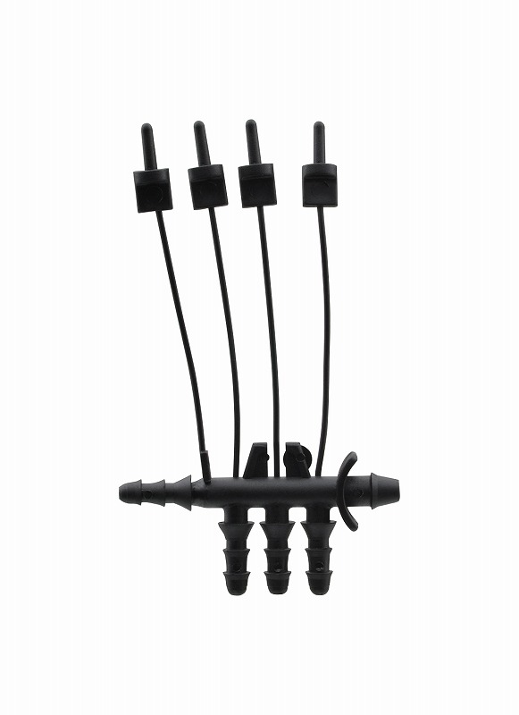 マカロニホースを4方向へ分水する接手です。