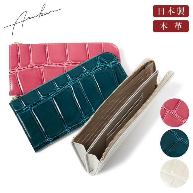 【レビュー投稿で+5%還元】アルカン 長財布 L字ファスナー 本革 レディース テールワニ 1216-632 日本製 ARUKAN 薄型 型押し エンボス ワニ 牛革 レザー 開運 一粒万倍日