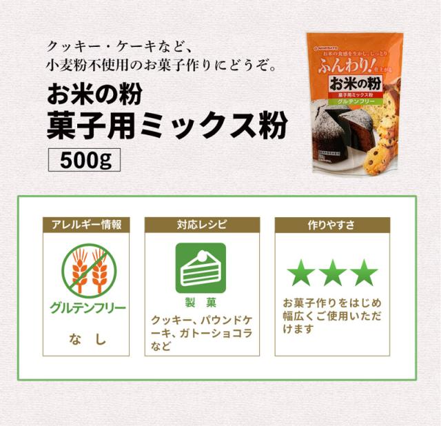 小麦粉不使用のお菓子づくりに。本品は、国産米粉を主原料としたミックス粉です。クッキーやケーキなどの小麦粉不使用のお菓子づくりにどうぞ。