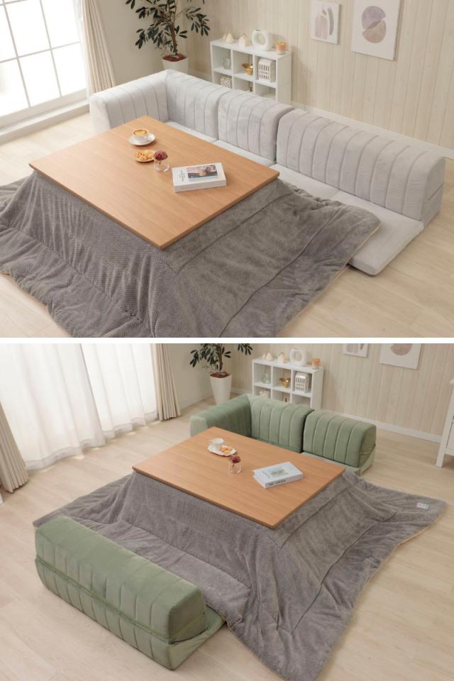 座面の低いフロアソファなので、冬はこたつと合わせるのもおすすめです。背もたれが冷気を遮ってくれるので、背中まで暖かく過ごせます。