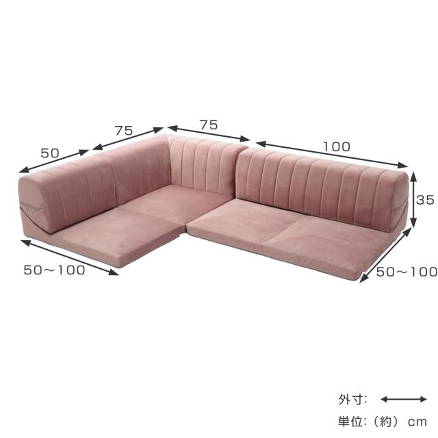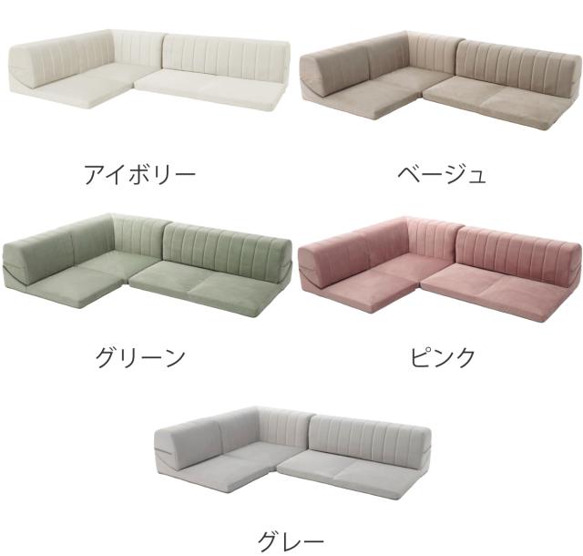 コーナーソファ 3点セット ベロア 日本製 ( ローソファ フロア ソファー l字 ロータイプ レイアウト 組合せ 自由 リクライニング 洗えるカバー くすみカラー かわいい おしゃれ )