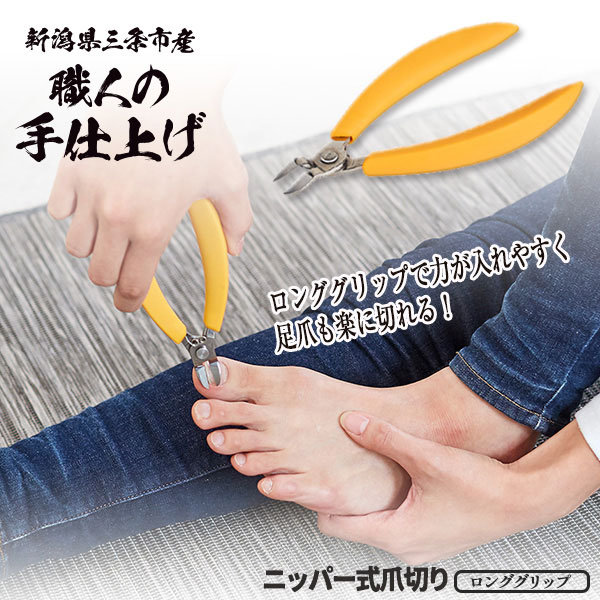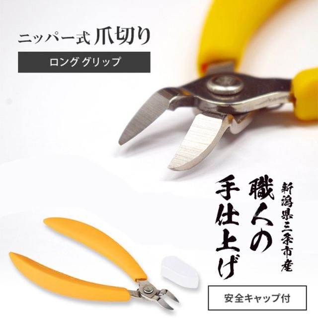 足爪も楽に切れるニッパー式爪切り 職人仕上げ 日本製 巻き爪 硬い爪 切りやすい 安全キャップ付 新潟県三条市産 イエロー