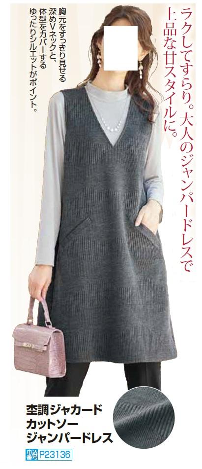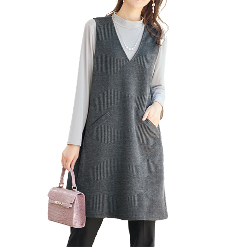 完売 ワンピース 秋冬 杢調ジャカードジャンパードレス グレー ワンピース ジャンパースカート チュニック レディース 婦人服 ミセス シニア 女性 シンプル Vネック シニアファッション 50代 60代 70代 80代 母の日 お母さん 大人 かわいい nss p23136