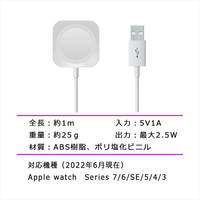 アップルウォッチ 充電ケーブル 充電器 置くだけ 充電 スマートウォッチチャージャー マグネット式 Apple watch 7 6 SE 5 4 3