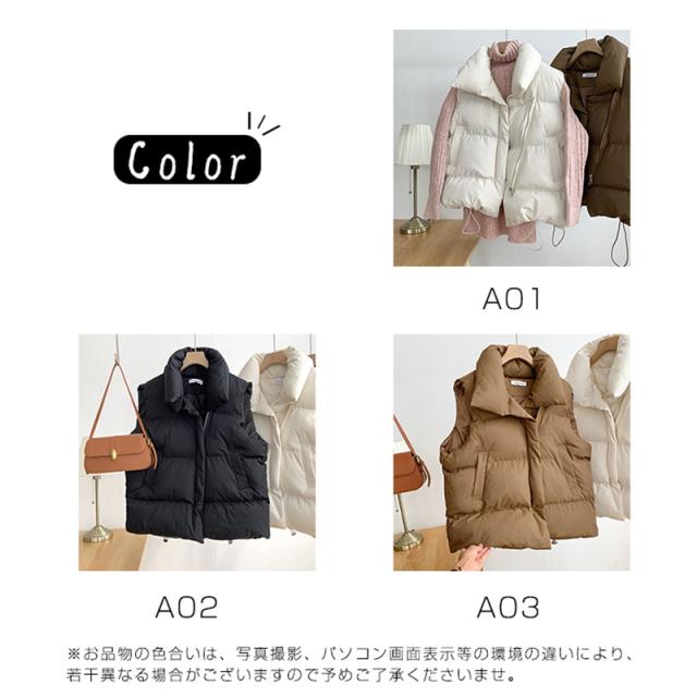 ベスト レディース ダウンベスト 中綿ベスト 前開き 中綿入り ゆったり ジレ 秋冬 アウター あったか 防寒 防風 軽量 着痩せ