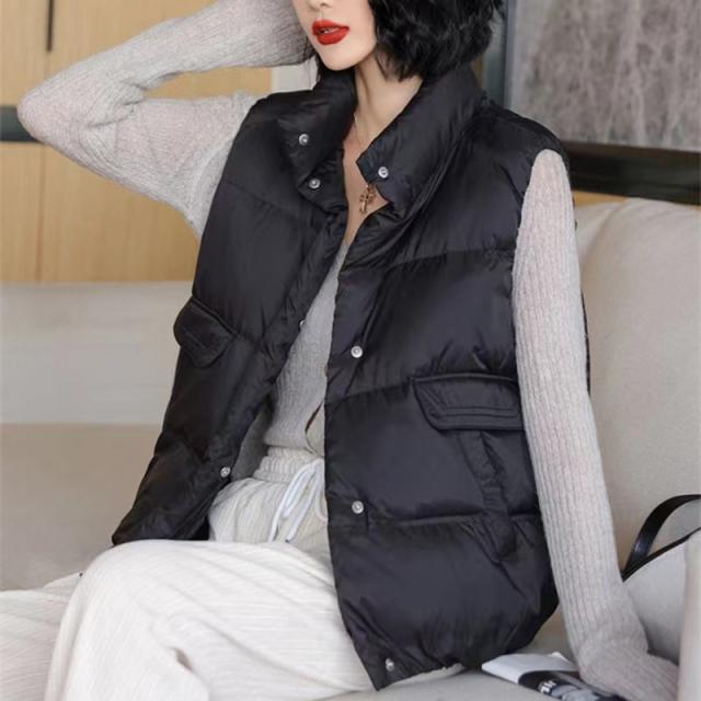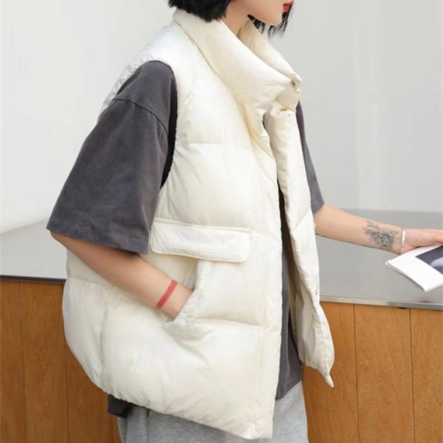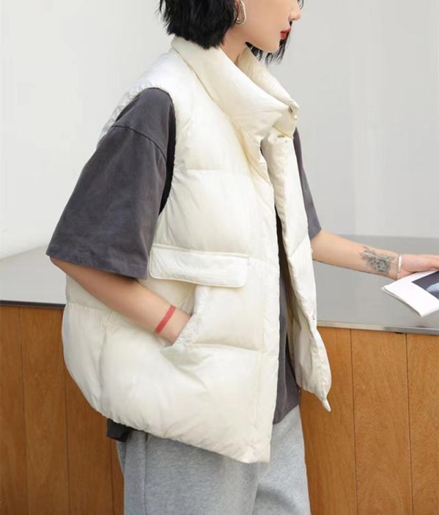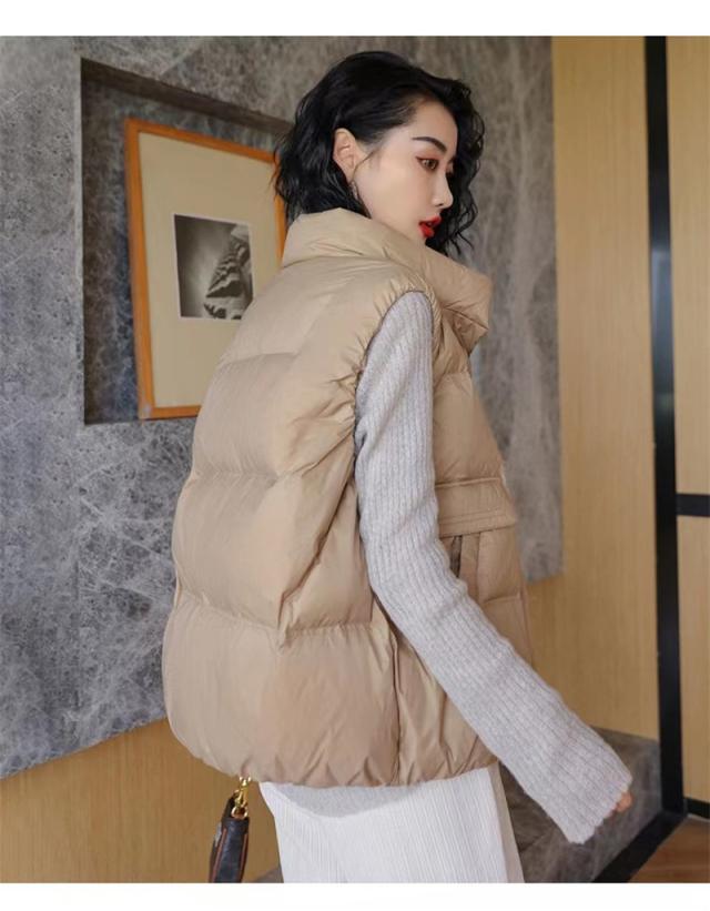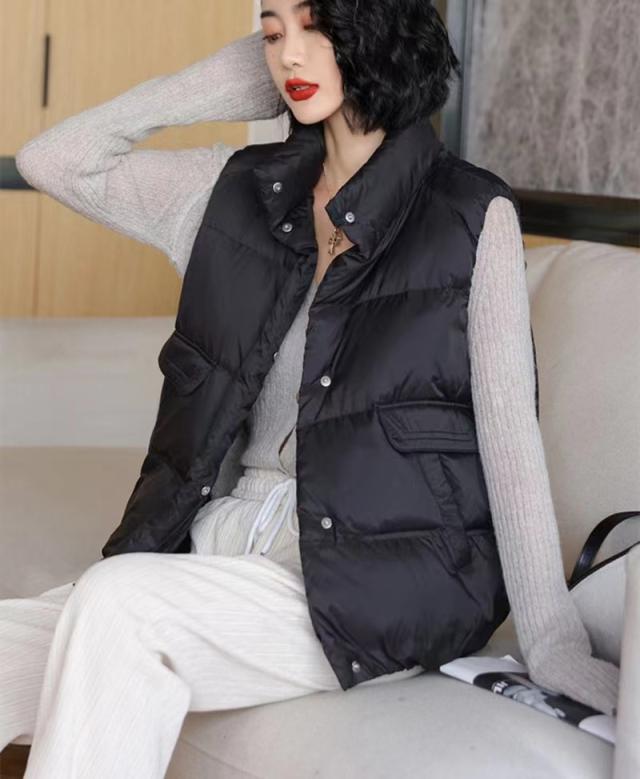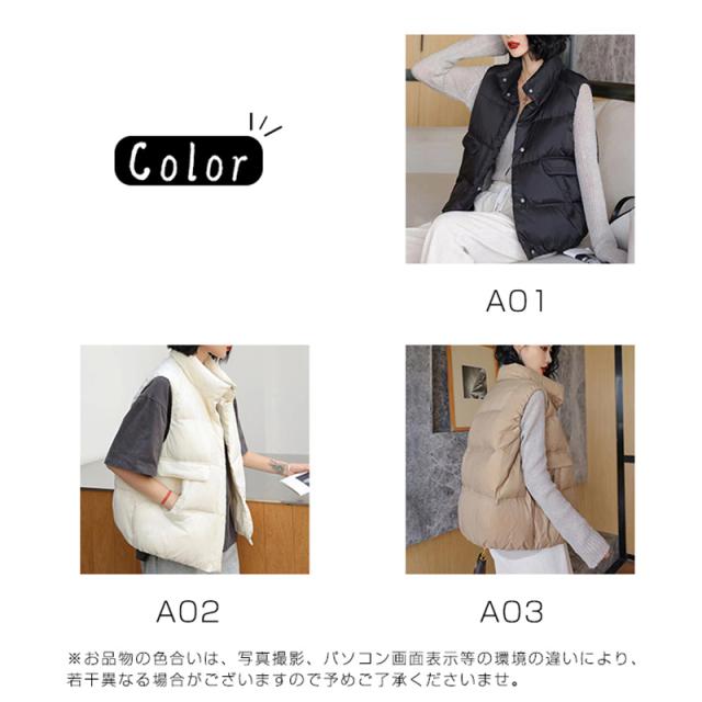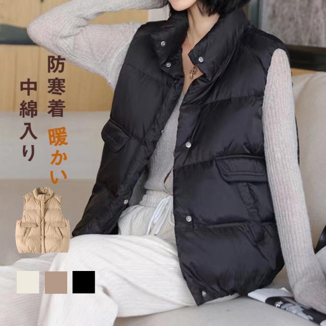 ベスト レディース ダウンベスト 前開き ダウン入り ゆったり ジレ 秋冬 アウター あったか 防寒防風 軽量 着痩せ きれいめ