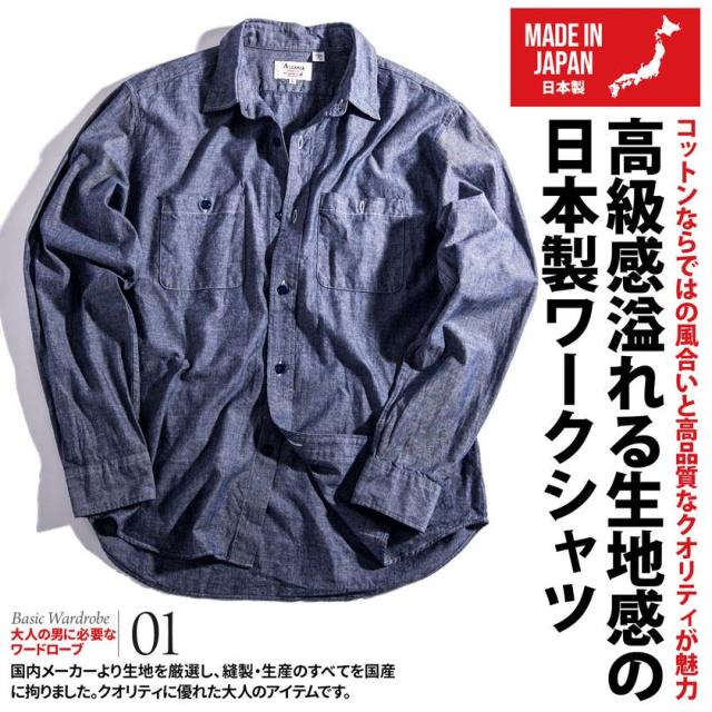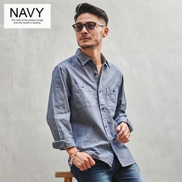 シャツ メンズ 長袖 長袖シャツ 日本製 国産 国内生産 無地 シンプル シャンブレーシャツ ダンガリーシャツ カジュアル ブランド ブラック ホワイト ネイビー ブルー 黒 白 青 大人 春 夏 秋 冬 ストリート 20代 30代 40代 メンズファッション 即日発送 [627-01]